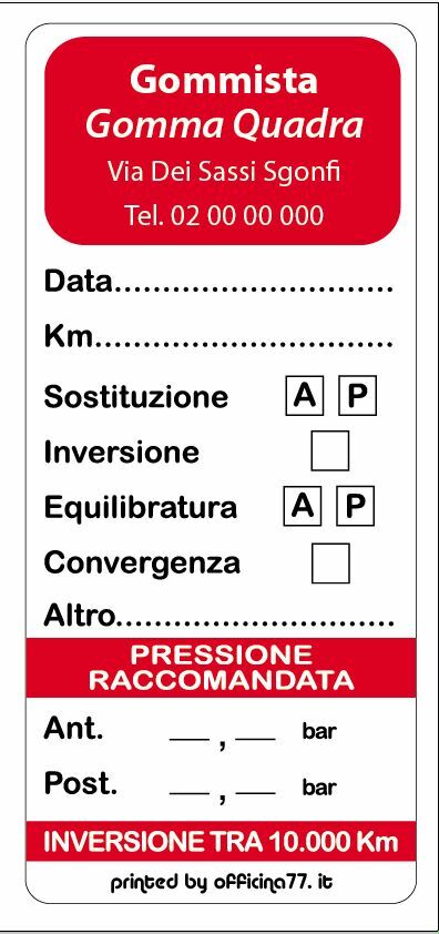 Realizziamo adesivi "Cambio Gomme" in matariale PVC adesivo (non in carta che lascia odiosi residui nel tempo)